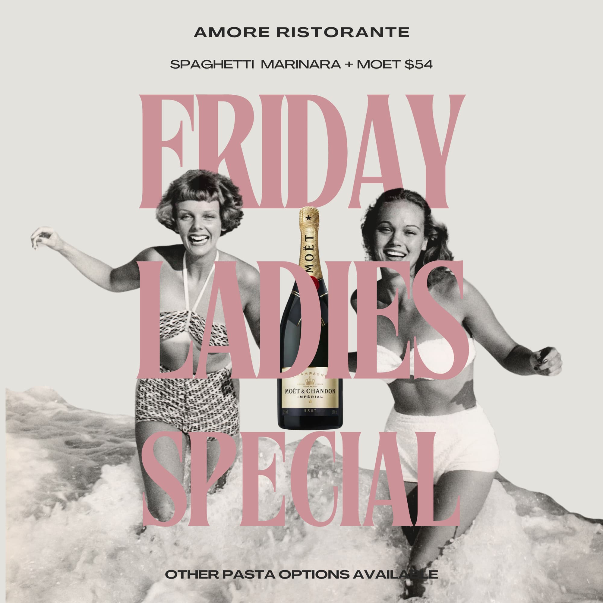 Enjoy Spaghetti Marinara + Moët Impérial for $54. Other pasta options available. Reserve your table!
